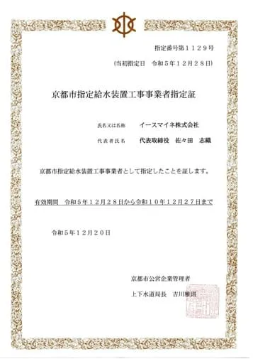 水漏れ修理 業者 選びで迷ったら。京都市指定店 ならではの「公的な制度」を熟知したご案内。