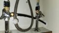 シャワーホースをカラン本体に取り付ける:シャワーホースをカラン本体に取り付けます。ジョイント部分を下にスライドさせ、カランにしっかりと差し込んだら、取り付けが正しく行われているか確認しましょう。